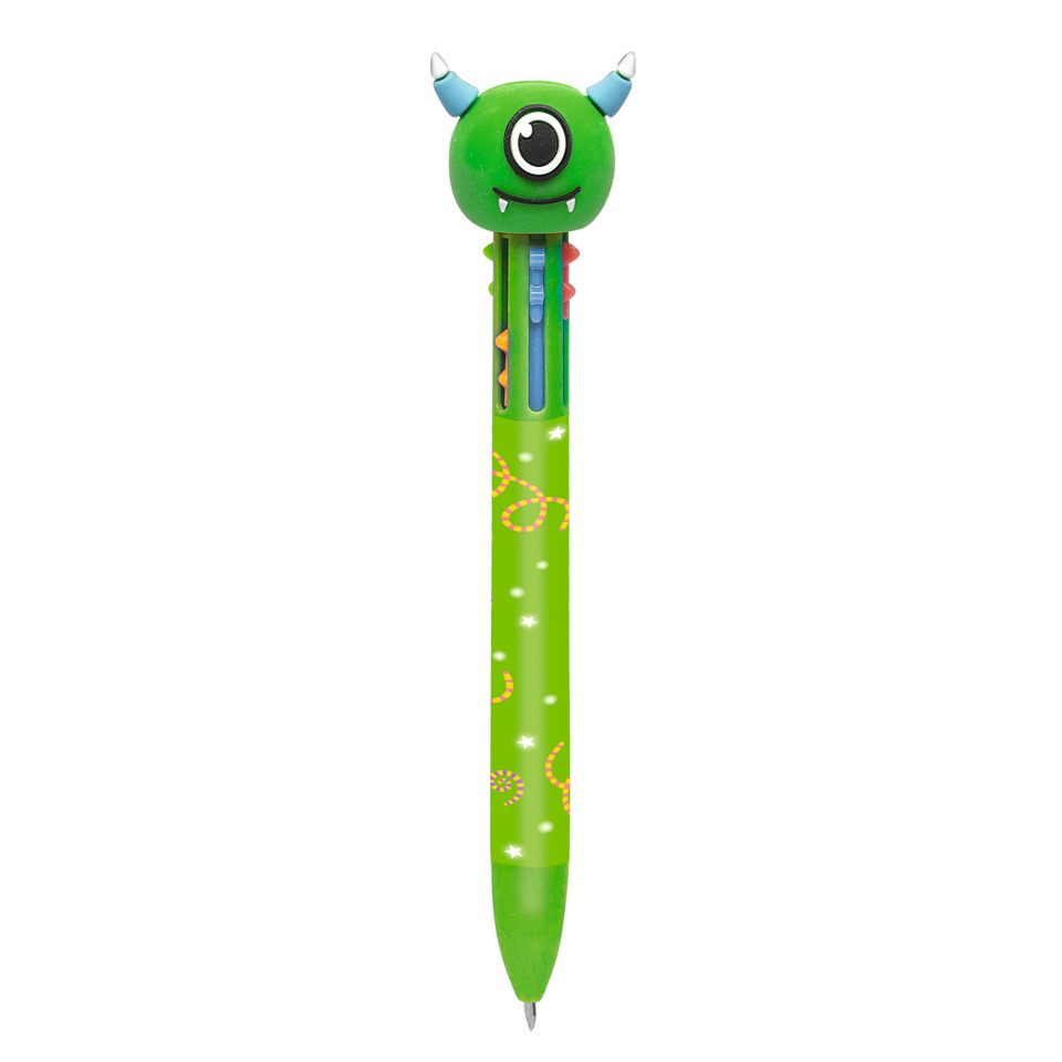 Der Monster 6-Farb-Gelschreiber mit seinem fröhlich-bunten Design und einer witzigen Monster-Figur auf dem Stiftende macht das Schreiben und Malen zu einem echten Vergnügen. Sechs verschiedene Farben - Rot, Orange, Grün, Lila, Schwarz und Blau - lassen sich kinderleicht auswählen und sorgen für kreative Abwechslung. Dank der radierbaren Tinte können kleine Fehler mit dem Monster-Radiergummi-Kopf einfach korrigiert werden. Egel ob Rot, Blau oder Grün, jedes Monster macht den Stift zum perfekten Begleiter für Schule, Zuhause oder unterwegs - ein kreativer Schreibspaß mit Monster-Charme. Maße: ca. 16 cm x Ø 3 cm.