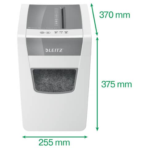 Leitz IQ Aktenvernichter Slim Home Office. Elektrischer Aktenvernichter für den persönlichen Gebrauch mit 1-2 Benutzern. Manuelle Papierzuführung. Mit Touch Control und Anti-Papierstau-Technologie. Mit Autoreverse und Auto Start/Stop. Mit LED-Anzeige für Überhitzungsschutz. Dauerbetrieb 6 Minuten. Extrem geräuscharm. Einfach zu leerender Abfallbehälter mit Sichtfenster. Schnittgut: Papier, Heft- und Büroklammern. Sicherheitsstufe: Partikelschnitt P-4. Blattkapazität: bis zu 10 Blatt (80 g/qm) bzw. bis zu 11 Blatt (70 g/qm) bzw. bis zu 400 Papierschnipsel. Partikelgröße: 4 x 28 mm. Abfallbehälter Auffangvolumen: 23 Liter / 225 Blatt. Schnittgeschwindigkeit: 30 mm/Sekunde für A4/80 g/qm. Maximale Eingabebreite: 220 mm. Leistungsaufnahme: 280 Watt. Geräuschpegel: ca. 62 dBA. Gewicht: 6,5 kg. Format: 255 x 375 x 370 mm. 2 Jahre Garantie, bei Registrierung 3 Jahre Garantie, GS-Zeichen, CE-Zeichen. Farbe: grau/weiß.