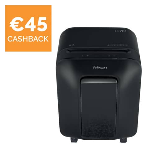 Eigenschaften "Aktenvernichter Powershred® LX201, Partikelschnitt 2x12mm, P5, 12 Blatt, schwarz FELLOWES 5050001"