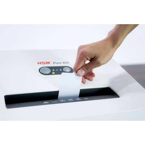 Eigenschaften "Aktenvernichter Pure 420, Streifenschnitt 5,8mm, P2, 24 Blatt, weiß HSM 2341111"