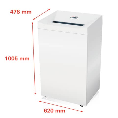 Aktenvernichter HSM Pure 940 - 4,5 x 30 mm. Der besonders leistungsstarke Datenvernichter mit extra großem Auffangvolumen für die Abteilung. Das robuste und kraftvolle Schneidwerk mit großer Eingabebreite überzeugt durch die hohe Durchsatzleistung und Dauerbetrieb. Die hochwertigen Materialien und die bewährte Qualität „Made in Germany“ garantieren Sicherheit und Langlebigkeit. Die induktionsgehärteten Vollstahl-Schneidwellen mit lebenslanger Garantie sind unempfindlich gegen Heft- und Büroklammern und garantieren Langlebigkeit. Der kraftvolle Motor stellt eine hohe Schnittleistung und den zuverlässigen Dauerbetrieb sicher. Der leise Betriebsmodus minimiert die Geräuschentwicklung am Arbeitsplatz. Für eine hohe Energieeinsparung sorgt die Stand-by Funktion, wenn der Aktenvernichter nicht in Gebrauch ist. Der Papiereinzug mit Überlastungsschutz reduziert Papierstau und erhält die hohe Durchsatzleistung. Ein leichter Druck auf das Sicherheitselement verhindert den unbeabsichtigten Einzug und stoppt sofort die Papierzufuhr. Eine integrierte Lichtschranke startet das Gerät automatisch bei Papierzufuhr. Der Aktenvernichter ist einfach und bequem auf Rollen fahrbar. Komfortables Entnehmen und Entleeren des herausziehbaren Mehrweg-Auffangbeutels im robustem Holzunterschrank mit weitem Tür-Öffnungswinkel. Der volle Auffangbehälter wird mittels Anzeige signalisiert und das Gerät schaltet automatisch ab. Lieferumfang: Mehrweg-Auffangbeutel (5 Stück), Schneidblock-Spezialöl (50 ml) bei Partikelschnitt-Varianten. Besondere Ausstattungsmerkmale: Sicherheitselement / Separater CD-Auffangbehälter / Rollen / Multifunktionsbedientaste / Dauerbetrieb / Automatischer Rücklauf. Art der Betätigung des Schneidwerks: Lichtschranke. Behälter-/Auffangvolumen: 165 l. Schnittgut: Papier / Kreditkarte / CD/DVD / Heft- und Büroklammern. Leistungsaufnahme: 2100 W. Eingabebreite: 400 mm. Schnittart: Partikelschnitt. Schnittgröße: 4,5 x 30 mm. Sicherheitsstufe (DIN 66399): P-4 / O-3 / T-4 / E-3 / F-1. Schnittleistung in Blatt (80 g/m²): 33 - 35. Schnittleistung in Blatt (70 g/m²): 37 - 39. Schnittgeschwindigkeit: 110 mm/s. Spannung/Frequenz: 220 - 230 V/50 Hz. Abmessungen (BxHxT): 620 mm x 1005 mm x 487 mm. Gewicht: 75 kg. Gewährleistungszeit: 24 Monate. Farbe: weiß.