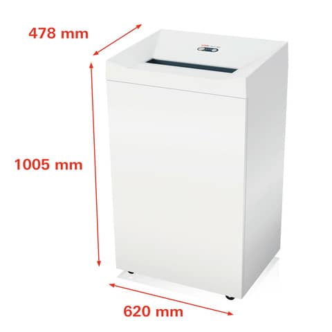 Aktenvernichter HSM Pure 940 - 5,8 mm. Der besonders leistungsstarke Datenvernichter mit extra großem Auffangvolumen für die Abteilung. Das robuste und kraftvolle Schneidwerk mit großer Eingabebreite überzeugt durch die hohe Durchsatzleistung und Dauerbetrieb. Die hochwertigen Materialien und die bewährte Qualität „Made in Germany“ garantieren Sicherheit und Langlebigkeit. Die induktionsgehärteten Vollstahl-Schneidwellen mit lebenslanger Garantie sind unempfindlich gegen Heft- und Büroklammern und garantieren Langlebigkeit. Der kraftvolle Motor stellt eine hohe Schnittleistung und den zuverlässigen Dauerbetrieb sicher. Der leise Betriebsmodus minimiert die Geräuschentwicklung am Arbeitsplatz. Für eine hohe Energieeinsparung sorgt die Stand-by Funktion, wenn der Aktenvernichter nicht in Gebrauch ist. Der Papiereinzug mit Überlastungsschutz reduziert Papierstau und erhält die hohe Durchsatzleistung. Ein leichter Druck auf das Sicherheitselement verhindert den unbeabsichtigten Einzug und stoppt sofort die Papierzufuhr. Eine integrierte Lichtschranke startet das Gerät automatisch bei Papierzufuhr. Der Aktenvernichter ist einfach und bequem auf Rollen fahrbar. Komfortables Entnehmen und Entleeren des herausziehbaren Mehrweg-Auffangbeutels im robustem Holzunterschrank mit weitem Tür-Öffnungswinkel. Der volle Auffangbehälter wird mittels Anzeige signalisiert und das Gerät schaltet automatisch ab. Lieferumfang: Mehrweg-Auffangbeutel (5 Stück), Schneidblock-Spezialöl (50 ml) bei Partikelschnitt-Varianten. Besondere Ausstattungsmerkmale: Sicherheitselement / Separater CD-Auffangbehälter / Rollen / Multifunktionsbedientaste / Dauerbetrieb / Automatischer Rücklauf . Art der Betätigung des Schneidwerks: Lichtschranke. Behälter-/Auffangvolumen: 165 l. Schnittgut: Papier / Kreditkarte / CD/DVD / Heft- und Büroklammern. Leistungsaufnahme: 2100 W. Eingabebreite: 400 mm. Schnittart: Streifenschnitt. Schnittgröße: 5,8 mm. Sicherheitsstufe (DIN 66399): P-2 / O-1 / T-1 / E-2. Schnittleistung in Blatt (80 g/m²): 51 - 53. Schnittleistung in Blatt (70 g/m²): 57 - 59. Schnittgeschwindigkeit: 110 mm/s. Spannung/Frequenz: 220 - 230 V/50 Hz. Abmessungen (BxHxT): 620 mm x 1005 mm x 487 mm. Gewicht: 70 kg. Gewährleistungszeit: 24 Monate. Farbe: weiß.