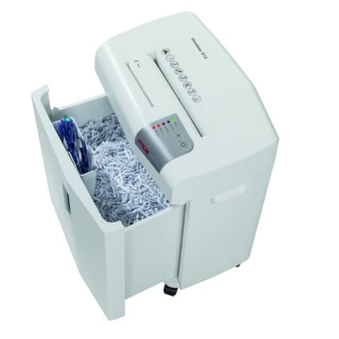 Bedienerfreundlich und funktionell. Dieser Partikelschnitt-Aktenvernichter auf Rollen im modernen Design verfügt über eine Anti-Papierstau Funktion. Geeignet für bis zu 5 Personen. Automatischer Rücklauf behebt Papierstau. Separates CD-Schneidwerk mit eigenem Auffangbehälter für sortenreine Entsorgung. Leiser Betrieb minimiert Geräuschentwicklung am Arbeitsplatz. Funktionelles und übersichtliches Bedienfeld. Automatisches Erkennen und Abschalten bei vollem Auffangbehälter. Lichtschranke für automatischen Start/Stopp. Füllstandsanzeige durch Sichtfenster im Auffangbehälter. Herausnehmbarer Auffangbehälter für müheloses Entleeren.