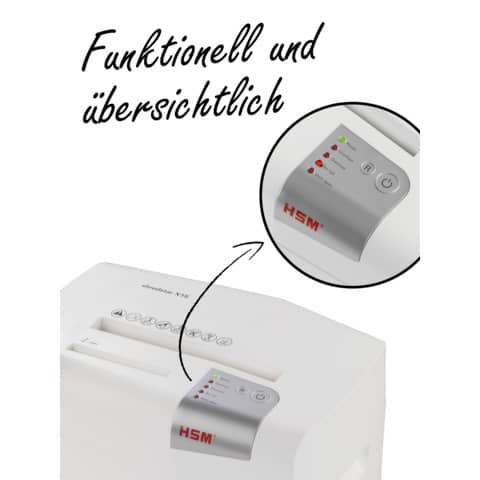 Eigenschaften "Aktenvernichter shredstar X15, Partikelschnitt 4x35mm, P4, 15 Blatt, weiß/silber HSM 1030121"