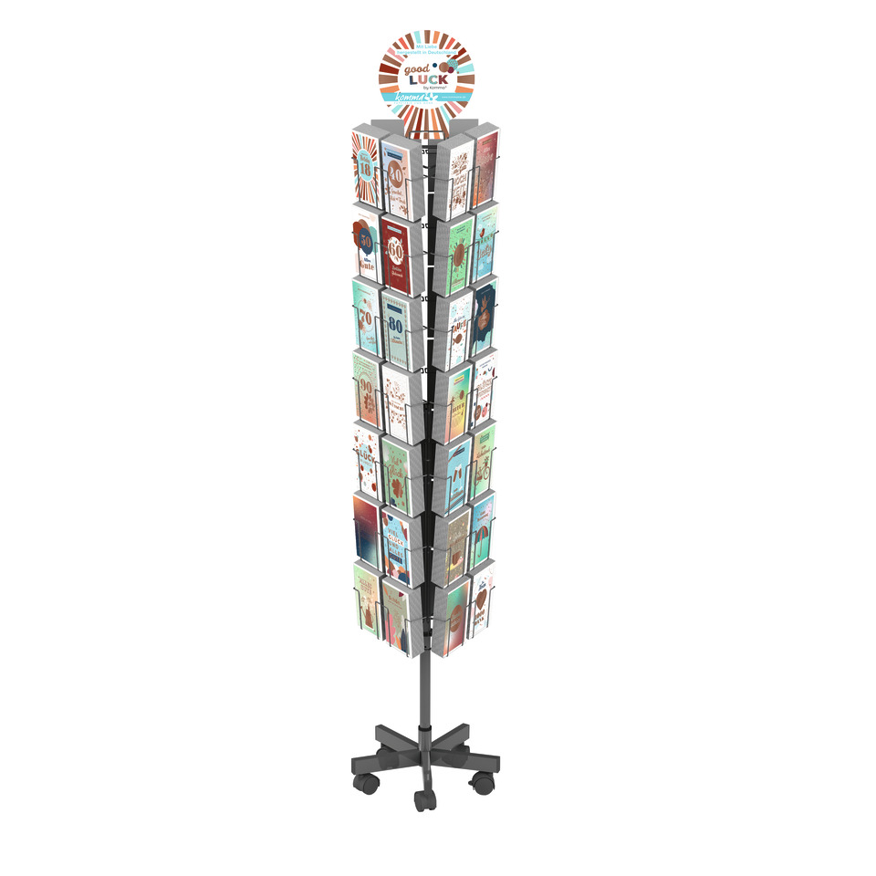 Jede Karte wird mit einem eleganten weißen Umschlag (120 g/m²) geliefert, der Ihre Botschaften perfekt zur Geltung bringt. Das Modul kommt mit einem stabilen Ständer, der eine ansprechende Präsentation in Ihrem Verkaufsbereich oder auf Ihrem Schreibtisch ermöglicht. Ein dekoratives Kopfschild sorgt für zusätzliche Aufmerksamkeit und macht das Modul zu einem Blickfang.