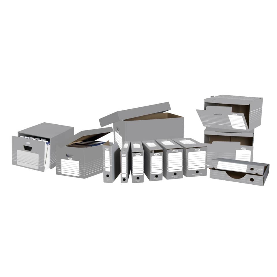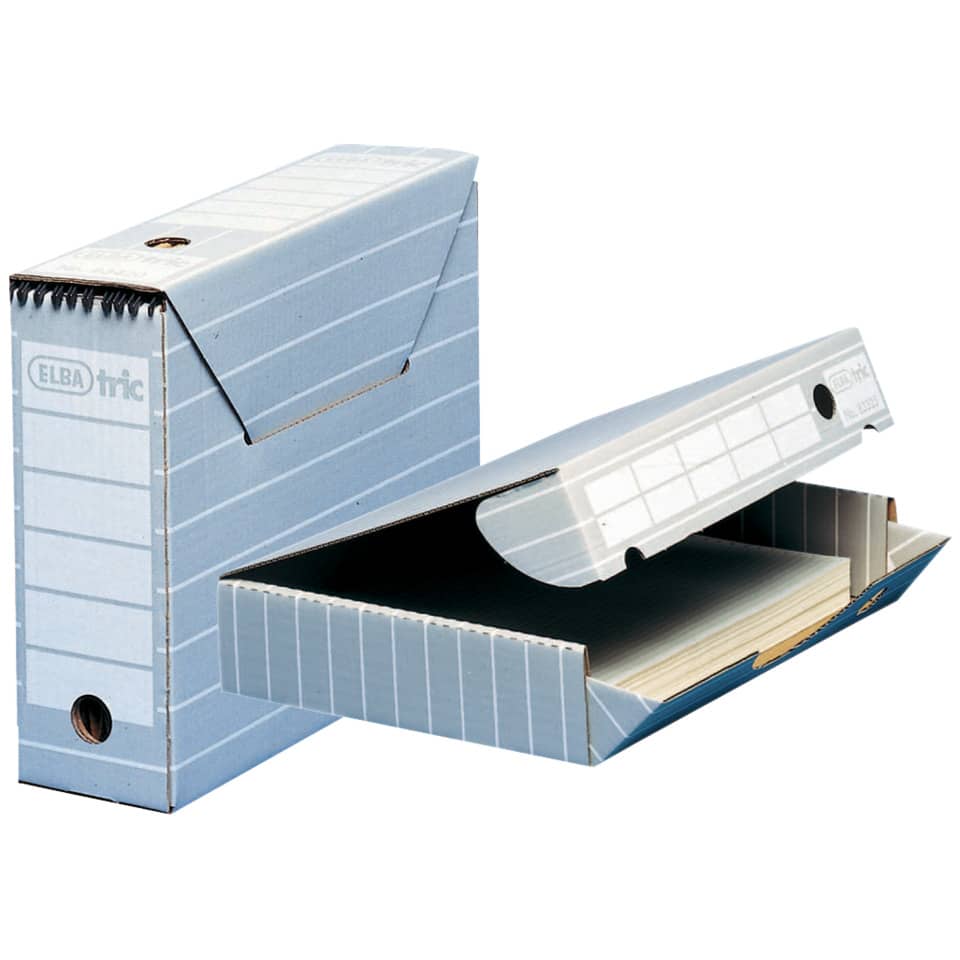ELBA ist eine der bekanntesten Marken für Büroartikel in Europa. Wir entwickeln kontinuierlich innovative Lösungen, um neue Ansätze für eine effiziente und funktionale Organisation vorzuschlagen. ELBA. Free yourself, get organised. ELBA Archiv-Ablage "tric" Die ELBA Archivablage tric ist ein modernes Ablagesystem in verschiedenen Varianten und aufeinander abgestimmten Design mit vielen Vorteilen: • Ablage und Archivierung von Dokumenten und Ablagesystemen aller Art. • Die ELBA tric Ablage-Elemente lassen sich miteinander kombinieren. • Die Basis-Elemente sind problemlos in Höhe und Breite erweiterbar. • Schutz vor Staub, Schmutz und Lichteinwirkung. • Organisiertes, aufgeräumtes und raumsparendes Lagern von Dokumenten und perfekte Lösungen zu deren Transport. • Geringe Kosten durch Registraturmittel aus umweltfreundlicher, recycelter Wellpappe und wirtschaftlich, da preiswerter als Möbel. ELBA Ablage-Schachtel "tric" Produktdetails • Box für Ordnerfüllungen oder Systemregistraturen ohne Reiter • Aus extrem stabiler und säurefreier Wellpappe für eine langlebige Archivierung • Mit Verschlusslasche, Archivaufdruck & zwei Grifflöchern • Für Hoch- und Querformate • Einfacher Aufbau • Für Formate bis A4 • Farbe: Grau / Weiß • Maße: 95 x 340 x 265 mm