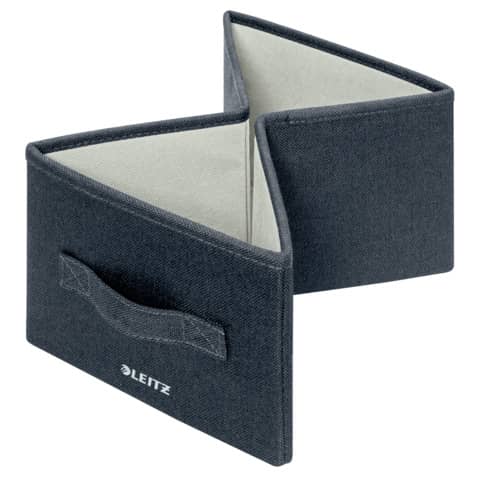 Leitz Aufbewahrungsbox aus Stoff mit Deckel Klein. Faltbar. Hergestellt aus 57% recycelten Materialien. Das Produkt kann vollständig auseinander gebaut werden und ist bis zu 71% recycelbar. Schneller, einfacher Aufbau durch einfaches Auffalten der Box. Mit abnehmbarem Deckel. Leicht und stabil. Mit Griffen an den Schmalseiten. Vollständig zusammenklappbar zur platzsparenden Lagerung bei Nichtgebrauch. Stapelbar. Plastikfreie Verpackung. Kapazität: ca. 4 Liter / 5 kg. Material: recycelte Pappe mit weichem Premium-Stoff überzogen, zu 71 % recycelbar. Format Außenmaß: 190 x 285 x 160 mm. Inhalt: 2 Stück. Farbe: samtgrau.