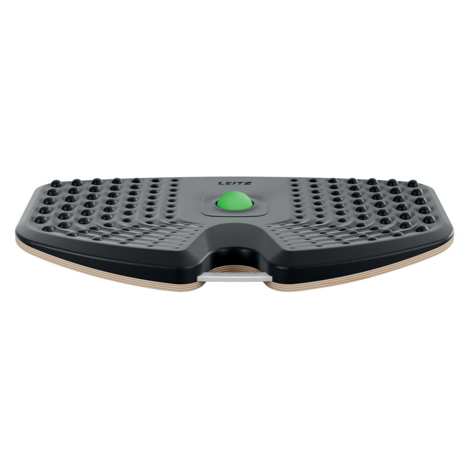 Leitz Balance Board Ergo Active. Hochwertiges, ergonomisches Active Balance Board für Sitz-Steh-Schreibtische und Fitnessübungen. Entwickelt, zur Stärkung der Körpermitte, Verbesserung der Körperhaltung, Reduzierung von Müdigkeit und Steigerung der Energie. Die sanfte Schaukelbewegung hält Beine und Rumpfmuskulatur in Bewegung, um die Körperhaltung zu verbessern und Rückenschmerzen zu lindern, die durch langes Stehen oder Sitzen verursacht werden. Die regelmäßige Verwendung des Ergo Balance Boards kann die Rumpfmuskulatur stärken und das Gleichgewicht und die Koordination verbessern, was sich positiv auf das allgemeine Wohlbefinden auswirken kann. Perfekt ausbalanciert mit einer Neigung von 14°, um natürliche und effektive Mikrobewegungen zu erzeugen, die ein sanftes, effektives Training für Beine und Füße ermöglichen. Die strukturierte Anti-Ermüdungs-Massagefläche kann den Druck auf Gelenke und Muskeln verringern und die Durchblutung fördern, was zur Steigerung des Energieniveaus beiträgt und Sie aufmerksamer und konzentrierter hält. Mit einzigartigem, herausnehmbarem Massageball (50 mm), der für eine tiefe, gezielte Entlastung Ihrer Füße sowie müder Handgelenke und Schultern sorgt. Hochwertige, robuste und weiche Schaumstoffoberfläche für optimalen Halt, geeignet für Schuhe, Socken oder barfuß. Mit einer wasserabweisenden Oberfläche, die vor Flüssigkeiten schützt und mühelos abgewischt werden kann. Kompakt und leicht mit einem stabilen, integrierten Aluminium-Tragegriff, der den Transport und die Aufbewahrung erleichtert, oder bei Nichtgebrauch an einem Leitz Ergo Pegboard Organiser (65490000) aufgehängt werden kann. Hergestellt aus strapazierfähigem Material, ideal für stark frequentierte Bereiche. Der massive, FSC-zertifizierte, rutschfeste und kratzfeste Holzsockel sorgt für Sicherheit, schützt den Boden und kann bis zu 200 kg tragen. Ein schlankes und ergonomisch gestaltetes Balance Board für aktives Stehen, das sich perfekt für Sitz- und Steharbeitsplätze und Fitnessübungen eignet. Er kann auch unter den Schreibtisch gestellt werden, um beim Sitzen für ein beruhigendes Wackeln zu sorgen und die Füße auch bei längerem Sitzen aktiv zu halten. Geprüft und empfohlen vom deutschen IGR, dem Institut für Gesundheit und Ergonomie, nach DIN 26800 EN ISO 15537. Wird komplett montiert in einer plastikfreien, recycelbaren Verpackung mit einer einfachen Gebrauchsanleitung geliefert. Material: Weicher Schaumstoff mit Holzsockel. Format: 540 x 65 x 310 mm. FSC®-zertifiziert. Farbe: schwarz.