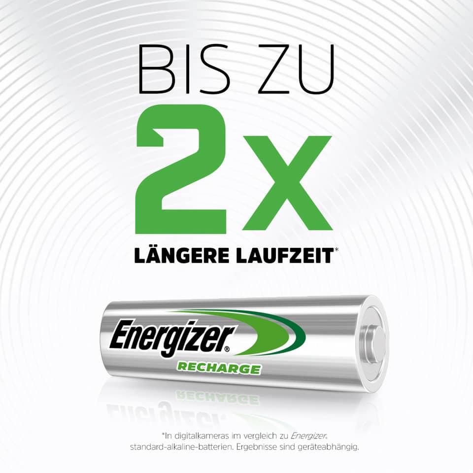 Holen Sie das Beste aus Ihren Geräten heraus – mit langanhaltender, wiederaufladbarer Power von Energizer. Egal ob Sie wiederaufladbare Batterien für Fernbedienungen, Spielzeug, Taschenlampen, Lichterketten, Kameras oder andere Elektrogeräte benötigen – mit diesen Akkus von Energizer treffen Sie die ideale Wahl! Die Energizer Accu Recharge Universal AA-Batterien werden bereits vorgeladen geliefert und speichern ihre Stromladung bis zu 12 Monate bei Lagerung. Diese Akkus können hunderte Male wiederaufgeladen werden und verfügen bei standardmäßigem Gebrauch über eine Lebensdauer von bis zu 5 Jahren. Außerdem bieten sie durch ihre auslaufsichere Konstruktion stets Schutz für Ihre Geräte (bei normalem Gebrauch). Das Energizer Accu Recharge Universal Sortiment umfasst auch AAA-Batterien. So können Sie jederzeit ganz bequem auf die für Sie relevante Batteriegöße mit zuverlässiger Leistungsstärke für Ihr Gerät zurückgreifen. Bei Interesse an Ladegeräten stehen Ihnen auch unsere Charger aus dem Energizer Accu Recharge Sortiment zur Auswahl – ideal für wiederaufladbare Batterien. Seit der Erfindung der ersten Verbraucherbatterie in 1896 blickt Energizer auf starke Innovationen zurück, darunter das Patent für die erste Alkalibatterie im Jahr 1959. Energizer bringt dieses Innovationsbewusstsein auch in Initiativen zugunsten der Umwelt ein, indem sie zum Beispiel bereits 1958 das erste wiederaufladbare Batteriesystem sowie 1989 die erste Batterie ohne Quecksilberzusatz eingeführt haben. Unter der Marke Energizer Recharge wurden zudem die ersten wiederaufladbaren Batterien der Welt entwickelt, die recyceltes Material enthielten. Das Unternehmen arbeitet intensiv mit Organisationen zusammen, die Verbraucher informieren und ermutigen Batterien und Batterieverpackungen zu recyceln, um Nachhaltigkeit zu fördern.