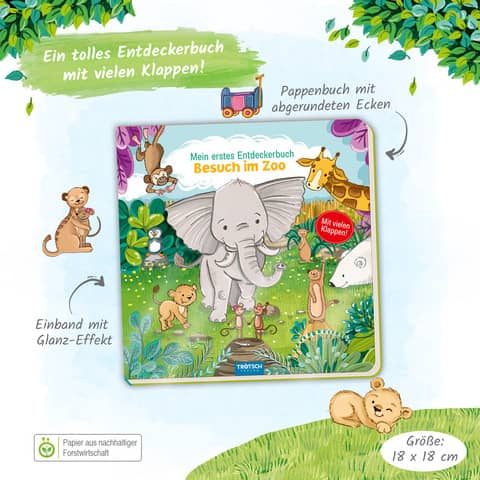 Eigenschaften "Bilderbuch Entdeckerbuch Zoo, 18 x 18 cm TRÖTSCH 20300"