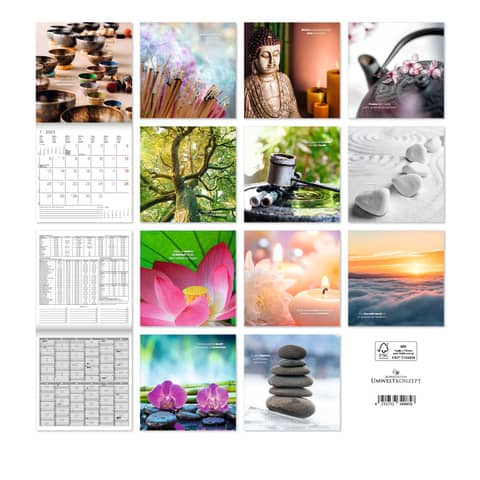 Hochwertiger Wandkalender, gedruckt auf Papier aus nachhaltiger Forstwirtschaft Hergestellt in Deutschland FSC-zertifiziert Fotomotivgröße 30 x 30 cm, aufgeklappt 30 x 60 cm 6-sprachiges Kalendarium (DE/FR/IT/ES/NL/GB) Feiertage (DE/AT/CH/GB/FR/IT/ES/NL/LU) und Ferientermine (DE/AT/CH) Inkl. Jahresübersicht 2025 Mit viel Platz für Notizen Auf jeder Seite zusätzlich eine Monatsübersicht vom Vor- und Folgemonat Sie finden bei uns eine sehr große Auswahl an Broschürenkalendern der Marke Alpha Edition - da ist für jeden Geschmack etwas dabei! Dieser wunderbare Wandkalender (aufgeklappt 30 x 60 cm) begeistert mit zwölf inspirierenden Fotografien, die dazu einladen, innezuhalten und den Augenblick bewusst zu genießen. Die Bilder im Format von 30 x 30 cm mit zum Nachdenken anregenden Lebensweisheiten begleiten Sie durch das Jahr. Das übersichtliche Kalendarium, welches Monat für Monat zahlreiche Zusatzinformationen liefert (z. B. Monatsübersichten, Ferientermine oder Mondphasen) und auch viel Platz für Notizen bietet, fügt sich unter den Fotomotiven an. Der Wandkalender Zen 2025 der Marke Alpha Edition bringt jeden Tag aufs Neue Ruhe und Harmonie in Ihren Alltag. Das Team der Neumann Verlage wünscht Ihnen viel Freude mit unseren Kalendern!