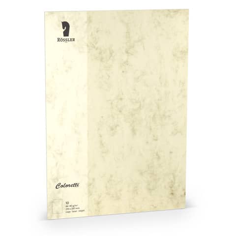 Eigenschaften "Blatt Coloretti, A4, 80g/m², 10 Stück, chamois marmora RÖSSLER 220701506"