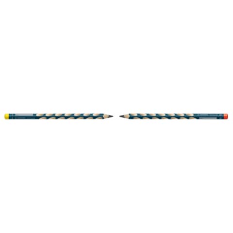 Ergonomischer Bleistift STABILO® EASYgraph. Ausführung der Schaftform: Dreikantform. Gespitzt. Schaft lackiert. Für Linkshänder - sichtbar durch gelben Farbcode am Stiftende. Dreikanform und rutschfeste Griffmulden für eine entspannte Handhaltung. Minendurchmesser 3,15 mm. Holz aus nachhaltiger Waldwirtschaft. Mit Namensfeld. Härtegradkennzeichnung vorhanden. Länge: 175 mm. Farbe des Schaftes: petrol. Bezeichnung der Härte: HB.