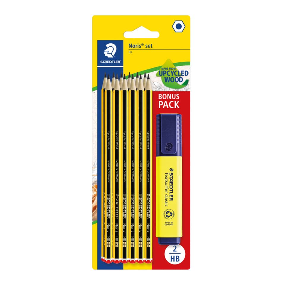 Bleistift (Büro) Noris® 120 Bleistift. Der perfekte Bleistift im klassischen Sechskantormat - Made from Upcycled Wood, Herstellung aus wiederaufbereiteten Holzspänen, Rutschfeste Soft-Oberfläche und hohe Bruchfestigkeit zum Schreiben,Zeichnen und Skizzieren, Erhältlich in 5 Härtegraden: 2B, B, HB, H, 2H, Holzanteil aus PEFC-zertifizierten, nachhaltig bewirtschafteten Wäldern, Spitzer Empfehlung: Noris Spitzdosen 511 004,511 120 oder Kunststoffspitzer 510 50 für ideale Spitzergebnisse, Nachhaltige Kartonverpackung im neuen Upcycled Wood Design. Ausführung Stift: Ausführung der Schaftform: hexagonal, Härtegradkennzeichnung vorhanden, Bezeichnung der Härte: HB, Ausführung des Spitzzustandes: gespitzt. Ausführung Schaft:, Farbe des Schaftes: gelb/schwarz. Art der Verpackung und Inhalt: Ausführung der Lieferzusammenstellung: Blisterkarte mit 12 Noris Bleistiften aus WOPEX Material und 1 Textsurfer 364.Art der Verpackung: Blisterkarte. Ausführung des Inhalts mit Packung: Blisterkarte mit 12 Noris Bleistiften aus WOPEX Material und 1 Textsurfer 364, Zertifikat/Zulassung: PEFC