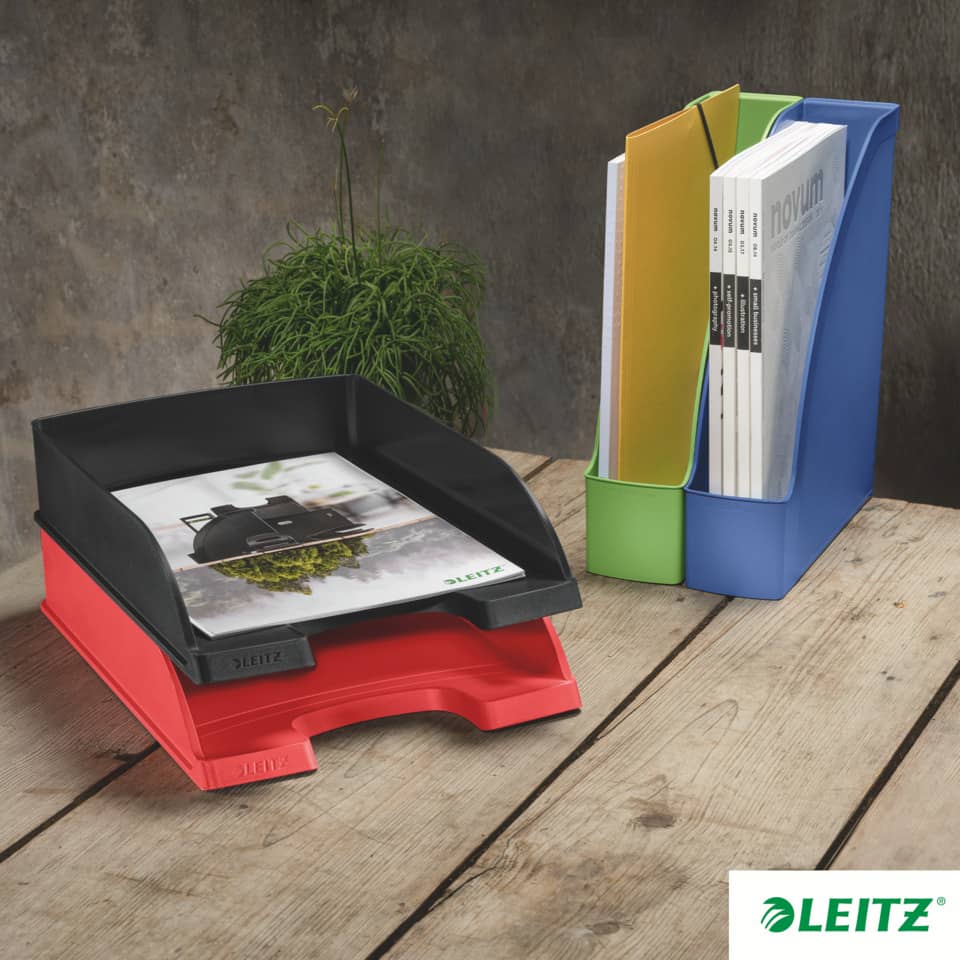 Leitz Briefkorb Recycle Hergestellt aus 90% recyceltem Kunststoff, 100% recycelbar. Stabil und langlebig. Mit großem Greifausschnitt. Stapelbar. Glatte, leicht zu reinigende Oberfläche. Kein Verpackungsabfall, Kennzeichnung nur mittels Etikett. Material: 90% recyceltes Polystyrol (PS). Format: für DIN A4, 255 x 70 x 357 mm. Farbe: grün.