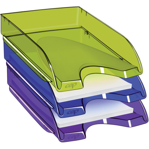 Die Briefkörbe sind vertikal oder versetzt stapelbar. Mit breitem Greifausschnitt. Füllhöhe bis 450 Blatt. Material: Polystyrol. Innemaß: 245 x 55 x 335 mm (B x H x T).