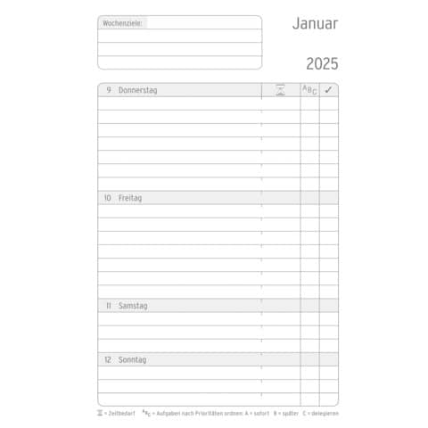 | Besonderheiten: | Einzigartiges Kalenderdesign mit Zeitmanagement Elementen, Chremfarbenes Papier FSC-zerifiziert |