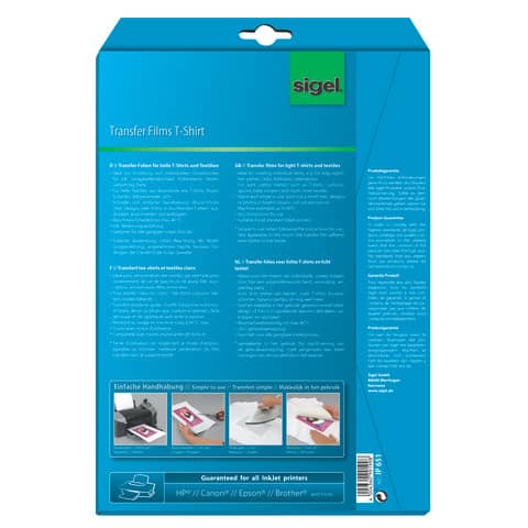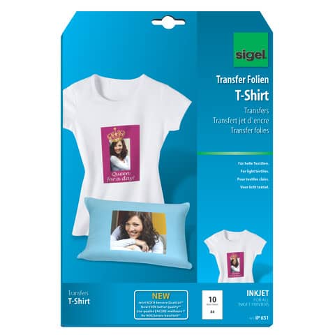 Eigenschaften "Bügelfolie Inkjet für helle Textilien, A4, 110g/m², 10 Blatt SIGEL IP651"