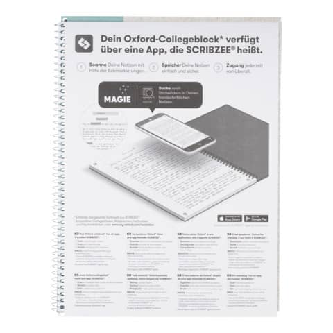 Eigenschaften "Collegeblock Recycling, A4+, 80 Blatt, punktkariert, aqua OXFORD 400159353"