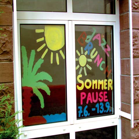 | Besonderheiten: | Für deckende Gestaltung von Fenstern und anderen geschlossenen Oberflächen. Anwendbar auch auf rauen und saugenden Medien, dort jedoch nicht abwischbar |