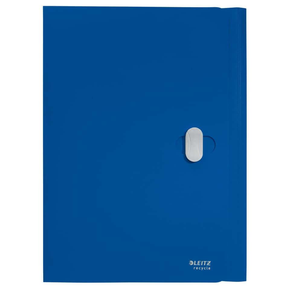 Leitz Dokumentenmappe Recycle. Hergestellt aus 80% recyceltem Kunststoff, 100% recycelbar. Leicht, langlebig und wiederverwendbar. Blickdicht. Mit recycelbarem Sicherheitsverschluss. Mit 3 Klappen am Rückdeckel innen. Kein Verpackungsabfall, Kennzeichnung nur mittels Etikett. Material: 80% recyceltes Polypropylen (PP) 0,25 mm. Kapazität: bis zu 150 Blatt DIN A4 (80 g/qm). Format: für DIN A4, 235 x 313 mm. Farbe: blau.