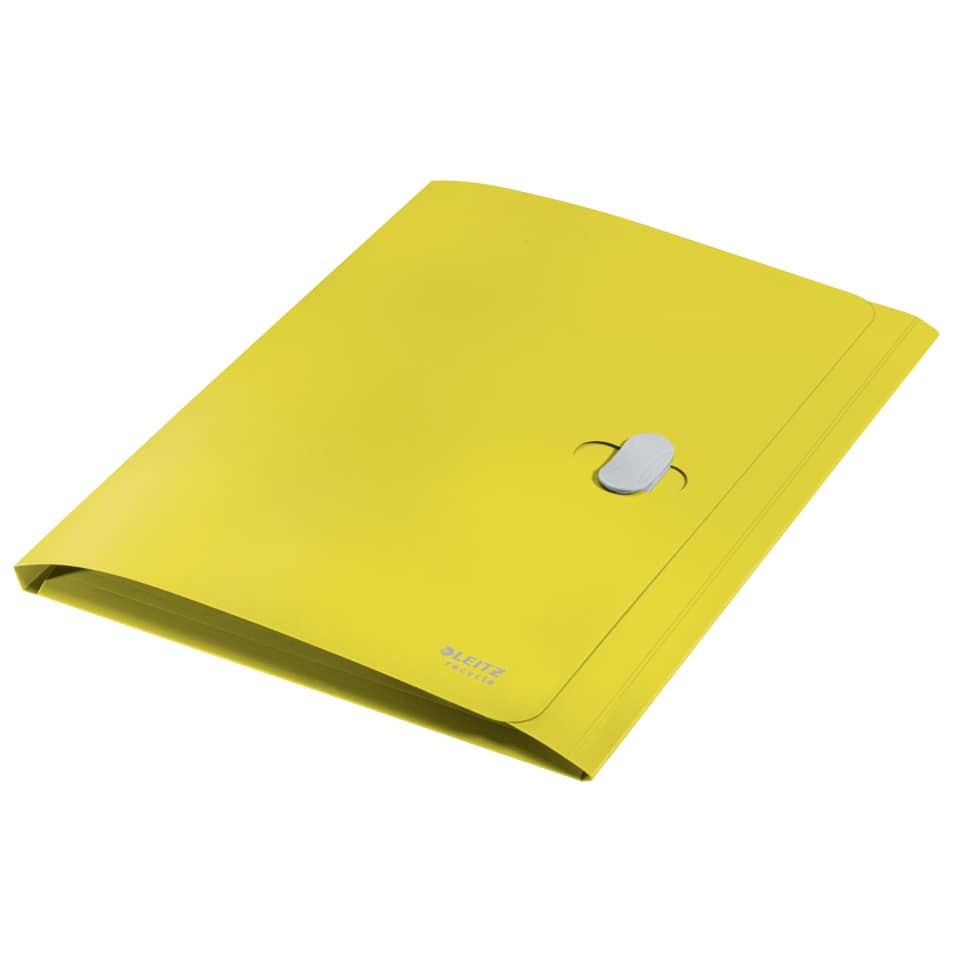 Leitz Dokumentenmappe Recycle. Hergestellt aus 80% recyceltem Kunststoff, 100% recycelbar. Leicht, langlebig und wiederverwendbar. Blickdicht. Mit recycelbarem Sicherheitsverschluss. Mit 3 Klappen am Rückdeckel innen. Kein Verpackungsabfall, Kennzeichnung nur mittels Etikett. Material: 80% recyceltes Polypropylen (PP) 0,25 mm. Kapazität: bis zu 150 Blatt DIN A4 (80 g/qm). Format: für DIN A4, 235 x 313 mm. Farbe: gelb.