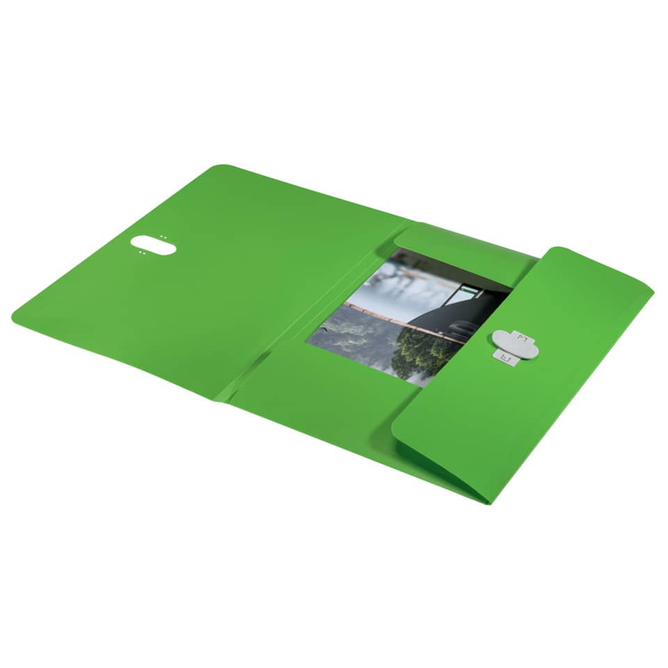 Leitz Dokumentenmappe Recycle. Hergestellt aus 80% recyceltem Kunststoff, 100% recycelbar. Leicht, langlebig und wiederverwendbar. Blickdicht. Mit recycelbarem Sicherheitsverschluss. Mit 3 Klappen am Rückdeckel innen. Kein Verpackungsabfall, Kennzeichnung nur mittels Etikett. Material: 80% recyceltes Polypropylen (PP) 0,25 mm. Kapazität: bis zu 150 Blatt DIN A4 (80 g/qm). Format: für DIN A4, 235 x 313 mm. Farbe: grün.