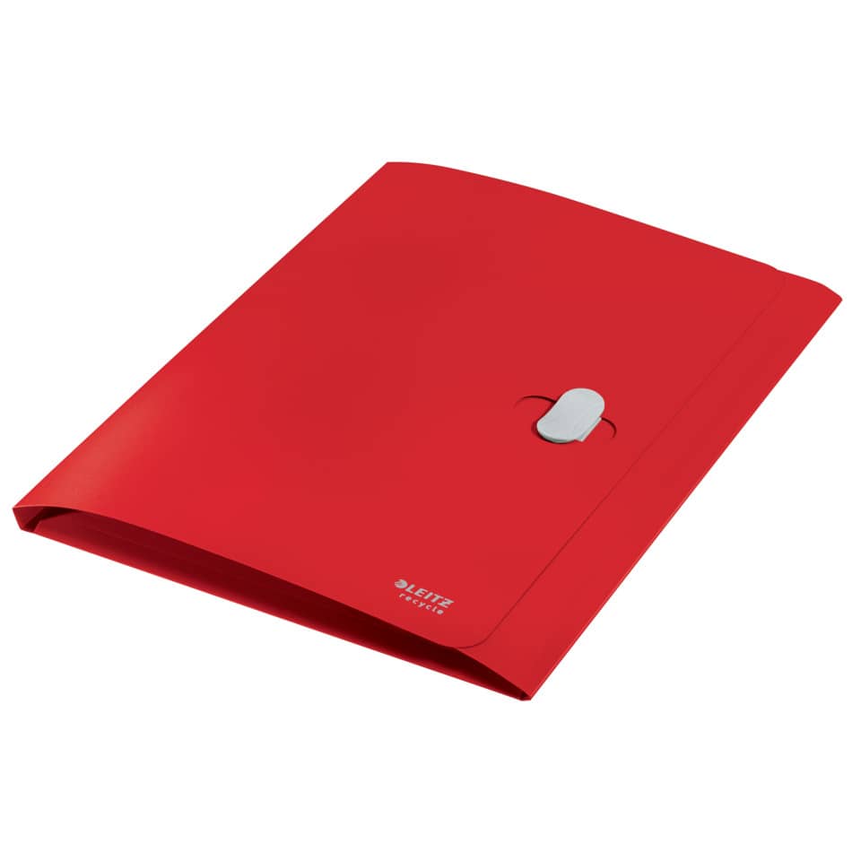 Leitz Dokumentenmappe Recycle. Hergestellt aus 80% recyceltem Kunststoff, 100% recycelbar. Leicht, langlebig und wiederverwendbar. Blickdicht. Mit recycelbarem Sicherheitsverschluss. Mit 3 Klappen am Rückdeckel innen. Kein Verpackungsabfall, Kennzeichnung nur mittels Etikett. Material: 80% recyceltes Polypropylen (PP) 0,25 mm. Kapazität: bis zu 150 Blatt DIN A4 (80 g/qm). Format: für DIN A4, 235 x 313 mm. Farbe: rot.
