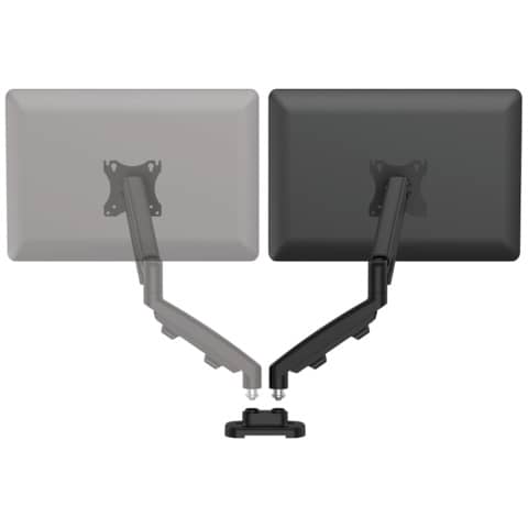 Doppel-Monitorarm Set Eppa(TM). Ideal für Hot Desks und Zusammenarbeit am Bildschirm. Mühelose Einstellung durch Gasfeder. Mit Kabelmanagement. 26cm Höhenverstellbarkeit und 53cm Reichweite. Ergonomisch zertifiziert nach der europäischen Ergonomienorm EN ISO 9241 durch FIRA International. Kompatibel mit VESA 75/100. Befestigungsart/Montage: Klemme oder Kabeldurchführung. Tragfähigkeit: 8 kg. Farbe: schwarz.