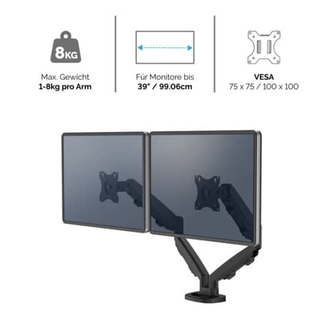 Eigenschaften "Doppel-Monitorarm Set Eppa(TM), schwarz FELLOWES 9683601"