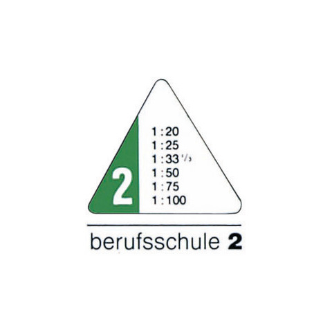 Präzisions-Dreikantmaßstab, Länge 30 cm, Art. 160, aus weißem Kunststoff, drei farbige Hohlkehlen, Präzisionsteilungen, markante, große Vorbezifferung, serienmäßig mit Rutschbremse, in stabilem PP-Etui. Teilung berufsschule 2 = 1:20; 1:25; 1:33 1/3; 1:50; 1:75; 1:100