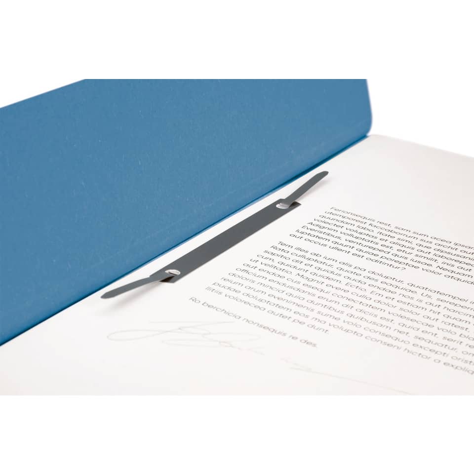 Einhakhefter A4 1/1 Vorderdeckel. Art der Heftung: kaufmännische Heftung. Ausstattung: ganz, Abheftvorrichtung vorhanden, Organisationsaufdruck vorhanden. Werkstoff: Manilakarton. Papiergewicht bzw Stärke: 250 g/qm. Verwendung für Papierformate: A4. Größe (B x H): 240 x 305 mm. Farbe: Blau. Blauer Engel.