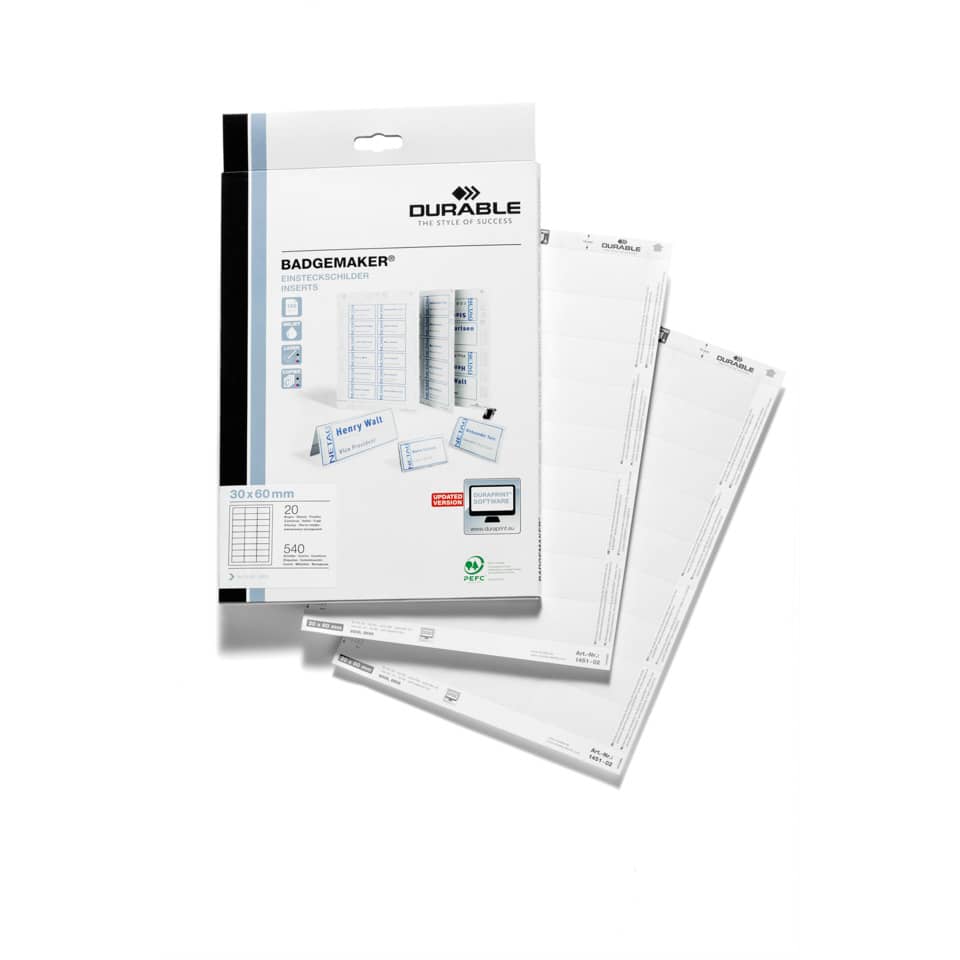 Produktinformationen "Einsteckschild Badgemaker®, 60x30mm, 540 Stück, weiß DURABLE 1451 02"
