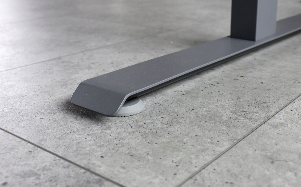 Höhenverstellung: Ausgestattet mit zwei leistungsstarken Motoren, die direkt in den Hubsäulen integriert sind, ermöglicht das Gestell eine sanfte und präzise Höhenanpassung. Der Verstellbereich reicht von 645 bis 1295 mm, was einer Hubhöhe von 650 mm entspricht. Mit einer Hubgeschwindigkeit von 32 mm pro Sekunde wird die gewünschte Arbeitshöhe schnell erreicht.