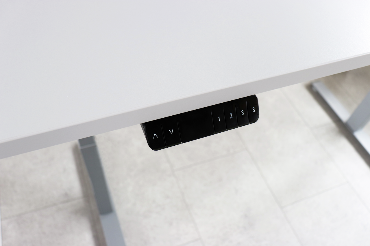 Memoryschalter: Der integrierte Memoryschalter bietet drei Speicherplätze, sodass du deine bevorzugten Höhen mühelos abrufen kannst. Zusätzlich sorgt eine einstellbare Begrenzung nach oben und unten für Sicherheit und Flexibilität.