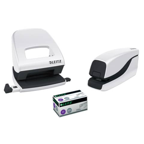 Leitz Elektrisches Heftgerät WOW. Mit Springfachmechanik. Für geschlossene Heftung. Batteriebetrieb (4 x AAA Batterien, nicht im Lieferumfang enthalten). Heftleistung: 1 mm/10 Blatt. Heftklammern: 100 x e1. Einlegetiefe: 10 mm. 3 Jahre Garantie nur bei Verwendung von Leitz Heftklammern, GS-geprüft, CE-Zeichen. Material: Metall mit Kunststoff. Farbe: weiß.