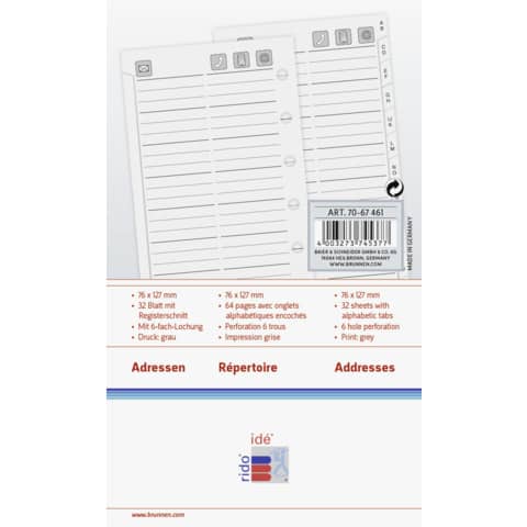 Eigenschaften "Ersatzeinlage Adressen für Timing 3, A7, 32 Blatt RIDO 7067461"