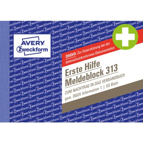 Eigenschaften "Erste Hilfe Meldeblock, A6 quer, 50 Blatt AVERY ZWECKFORM 313"