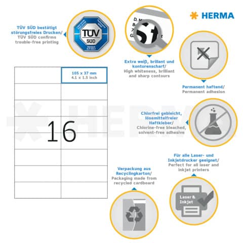 Eigenschaften "Etiketten Premium permanent, 105x37mm, 1600 Stück, weiß HERMA 4462"