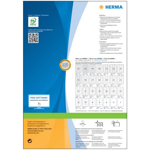 Selbstklebende Etiketten auf A4-Blättern, permanent haftend. Perfekt für alle Laser- und Inkjetdrucker, Kopierer, Farblaserdrucker und Farbkopierer. Garantiert staufrei und high-speed-fähig durch extra star ken Spezialverbund, Top-Planlage und Rundum-Sicherheitskante. Problemloser Druckerdurchlauf für Laserdrucker und Inkjetdrucker getestet und bestätigt durch den TÜV SÜD. Hoher Weißegrad und gleich mäßige Oberfläche für beste Druckergebnisse in Schwarz und Farbe. Spürbar dicker: extra starke Etiketten, einfaches Aufkleben. Besonders schnell und sicher haftend, auch auf kühlen und feuchten Oberflächen. Umweltschonend und nachhaltig: chlorfrei gebleicht, FSC® Mix Credit-zertifiziert, lösemittelfreier Haftkleber. Etiketten sind 100 % recyclingfähig mit dem Altpapier, Verpackung aus Recyclingkarton.