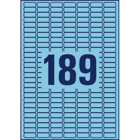 | Anzahl der Etiketten je Blatt (St.): | 189 |