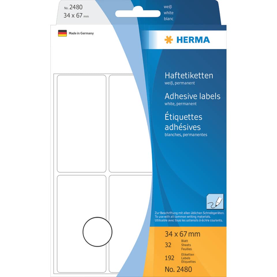 Produktinformationen "Etiketten permanent, 34x67mm, 192 Stück, weiß HERMA 2480"