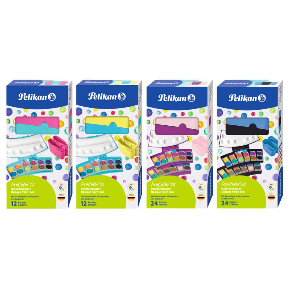 Deckfarbe, -farbkasten Pelikan Farbkasten ProColor®, Beere/Rosa, 24 Farben. Ausführung des Behälters: Farbschälchen. Anzahl der Farben: 24, Beere/Rosa. Inhalt Deckweiß: Inhalt: 24 hochwertige Farben mit starker Deckkraft ml. Ausführung des Inhalts mit Packung: 1 Stück inkl. 2 Wasserboxen, Deckweiß und Mischpalette in Faltschachtel