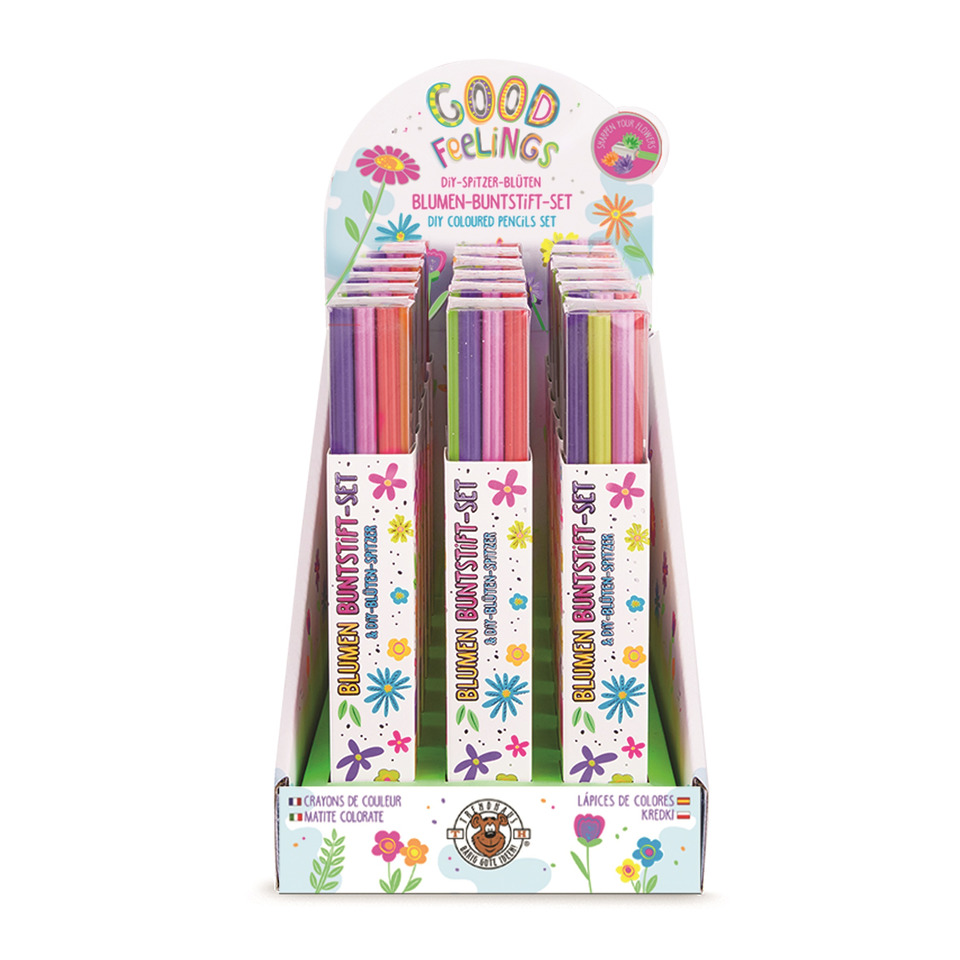 Dieses einzigartige Buntstift-Set macht Zeichnen zum kreativen Erlebnis! Die 9 farbigen Stifte (Länge ca. 17,8 cm) in Form einer Blüte lassen beim Spitzen wunderschöne Blütenmuster entstehen, die jede Kreation noch besonderer machen. Inkl. Spitzer mit auswechselbarer Metallklinge. Neonfarben & Silberfolierung machen die Verpackung zum echten Hingucker!