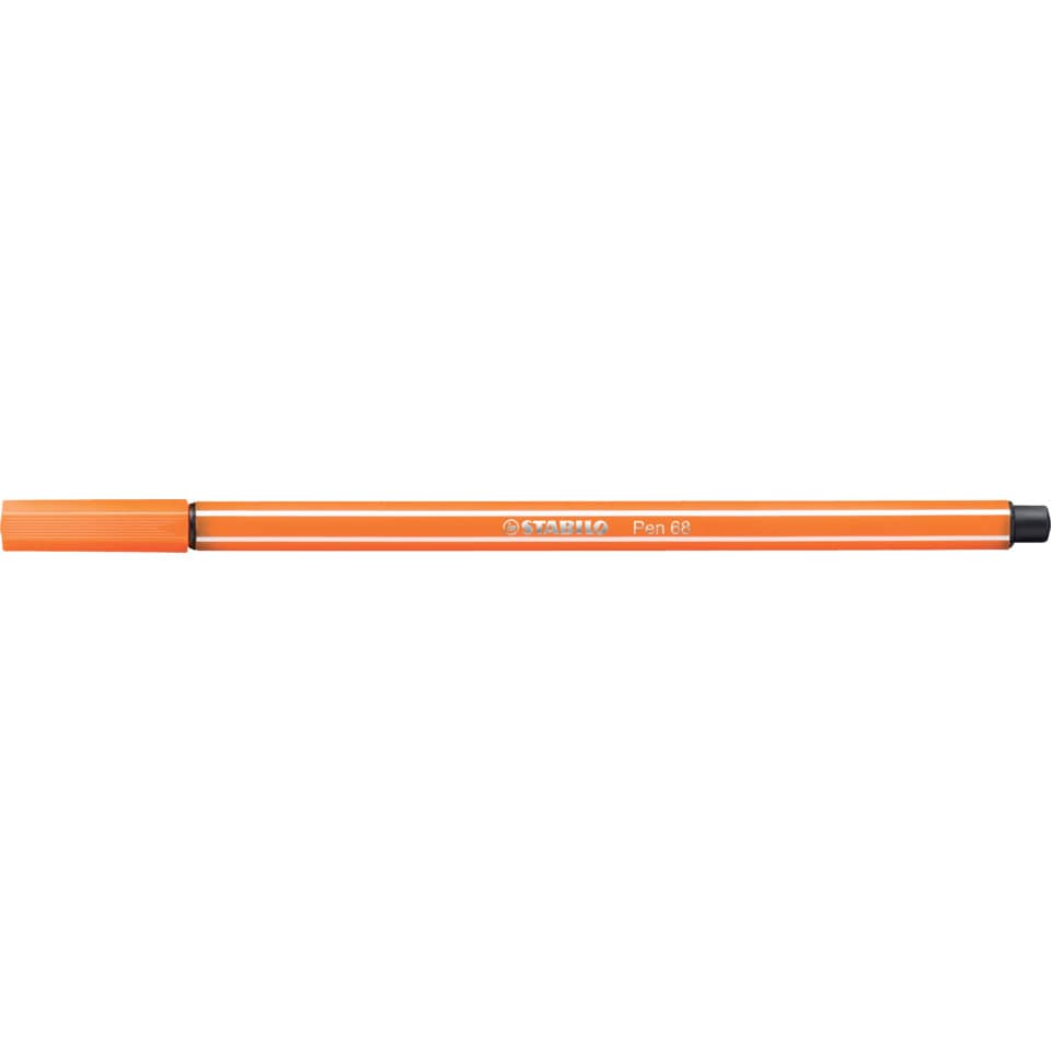 Premium-Filzstift STABILO® Pen 68, Material des Schaftes: Kunststoff, Farbe des Schaftes: Schreibfarbe mit weißen Kantenstreifen, Ausführung: , Rundspitze, Art der Schreibflüssigkeit: Tinte auf Wasserbasis, geruchsneutral, farbintensiv - für kräftige Linien und deckende Flächen. Hohe Brillanz und Leuchtkraft. Bis zu 24 Stunden Austrocknungsschutz ohne Kappe. Die robuste M-Spitze sorgt für gleichmäßige Farbabgabe. Ventilierte Kappe - am Stiftende aufsteckbar, Strichstärke: 1 mm, Schreibfarbe von Schreibgeräten: gelbrot, Zertifikate und Zulassungen: CE-Zeichen.