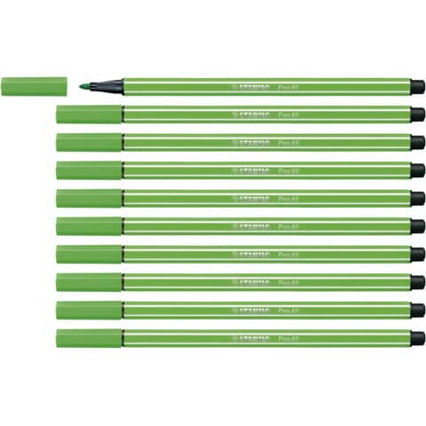 Premium-Filzstift STABILO® Pen 68, Material des Schaftes: Kunststoff, Farbe des Schaftes: Schreibfarbe mit weißen Kantenstreifen, Ausführung: , Rundspitze, Art der Schreibflüssigkeit: Tinte auf Wasserbasis, geruchsneutral, farbintensiv - für kräftige Linien und deckende Flächen. Hohe Brillanz und Leuchtkraft. Bis zu 24 Stunden Austrocknungsschutz ohne Kappe. Die robuste M-Spitze sorgt für gleichmäßige Farbabgabe. Ventilierte Kappe - am Stiftende aufsteckbar, Strichstärke: 1 mm, Schreibfarbe von Schreibgeräten: hellgrün, Zertifikate und Zulassungen: CE-Zeichen.