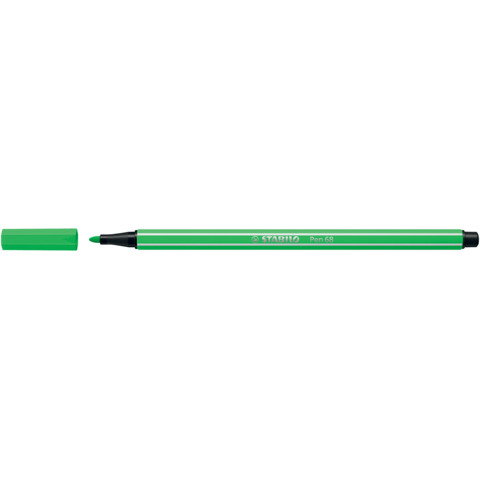 Premium-Filzstift STABILO® Pen 68, Material des Schaftes: Kunststoff, Farbe des Schaftes: Schreibfarbe mit weißen Kantenstreifen, Ausführung: , Rundspitze, Art der Schreibflüssigkeit: Tinte auf Wasserbasis, geruchsneutral, farbintensiv - für kräftige Linien und deckende Flächen. Hohe Brillanz und Leuchtkraft. Bis zu 24 Stunden Austrocknungsschutz ohne Kappe. Die robuste M-Spitze sorgt für gleichmäßige Farbabgabe. Ventilierte Kappe - am Stiftende aufsteckbar, Strichstärke: 1 mm, Schreibfarbe von Schreibgeräten: laubgrün, Zertifikate und Zulassungen: CE-Zeichen.