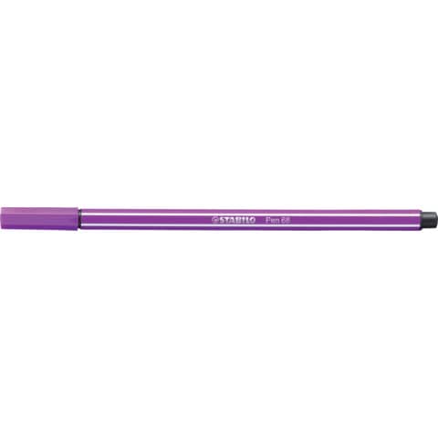 Premium-Filzstift STABILO® Pen 68, Material des Schaftes: Kunststoff, Farbe des Schaftes: Schreibfarbe mit weißen Kantenstreifen, Ausführung: , Rundspitze, Art der Schreibflüssigkeit: Tinte auf Wasserbasis, geruchsneutral, farbintensiv - für kräftige Linien und deckende Flächen. Hohe Brillanz und Leuchtkraft. Bis zu 24 Stunden Austrocknungsschutz ohne Kappe. Die robuste M-Spitze sorgt für gleichmäßige Farbabgabe. Ventilierte Kappe - am Stiftende aufsteckbar, Strichstärke: 1 mm, Schreibfarbe von Schreibgeräten: lila, Zertifikate und Zulassungen: CE-Zeichen.