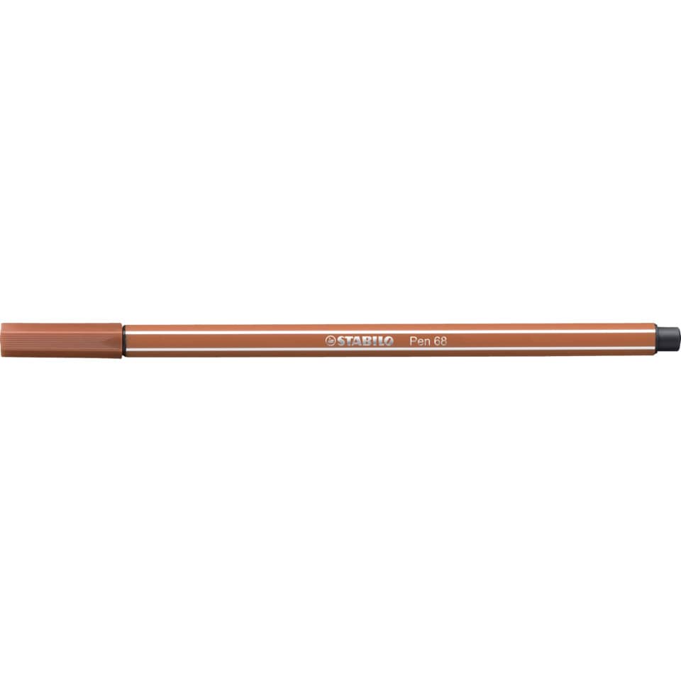 Premium-Filzstift STABILO® Pen 68, Material des Schaftes: Kunststoff, Farbe des Schaftes: Schreibfarbe mit weißen Kantenstreifen, Ausführung: , Rundspitze, Art der Schreibflüssigkeit: Tinte auf Wasserbasis, geruchsneutral, farbintensiv - für kräftige Linien und deckende Flächen. Hohe Brillanz und Leuchtkraft. Bis zu 24 Stunden Austrocknungsschutz ohne Kappe. Die robuste M-Spitze sorgt für gleichmäßige Farbabgabe. Ventilierte Kappe - am Stiftende aufsteckbar, Strichstärke: 1 mm, Schreibfarbe von Schreibgeräten: siena, Zertifikate und Zulassungen: CE-Zeichen.