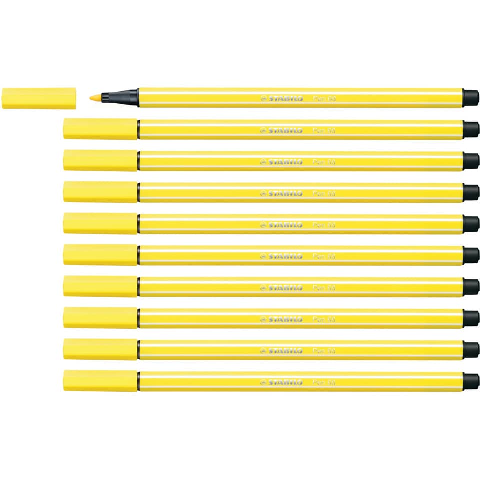 Premium-Filzstift STABILO® Pen 68, Material des Schaftes: Kunststoff, Farbe des Schaftes: Schreibfarbe mit weißen Kantenstreifen, Ausführung: , Rundspitze, Art der Schreibflüssigkeit: Tinte auf Wasserbasis, geruchsneutral, farbintensiv - für kräftige Linien und deckende Flächen. Hohe Brillanz und Leuchtkraft. Bis zu 24 Stunden Austrocknungsschutz ohne Kappe. Die robuste M-Spitze sorgt für gleichmäßige Farbabgabe. Ventilierte Kappe - am Stiftende aufsteckbar, Strichstärke: 1 mm, Schreibfarbe von Schreibgeräten: zitronengelb, Zertifikate und Zulassungen: CE-Zeichen.
